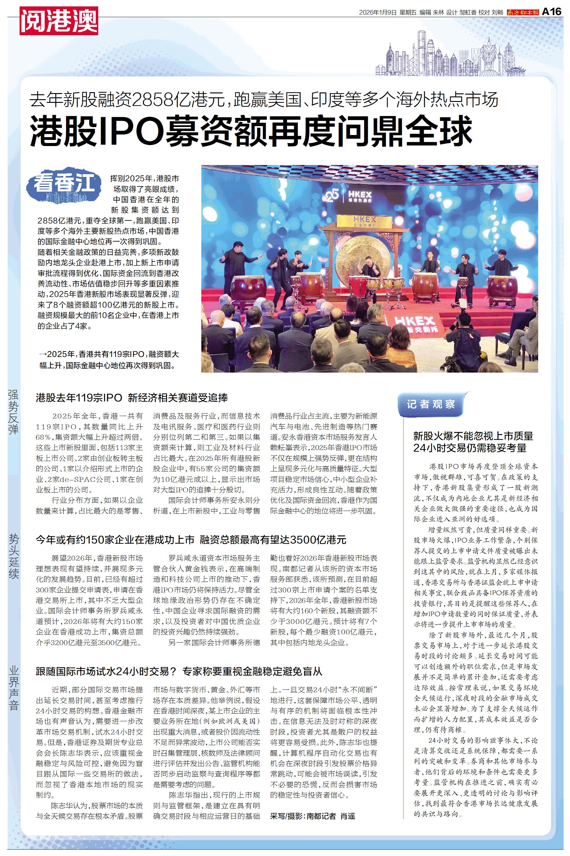 2026-01-09 南方都市報 港股IPO募资额再度问鼎全球 (相片)