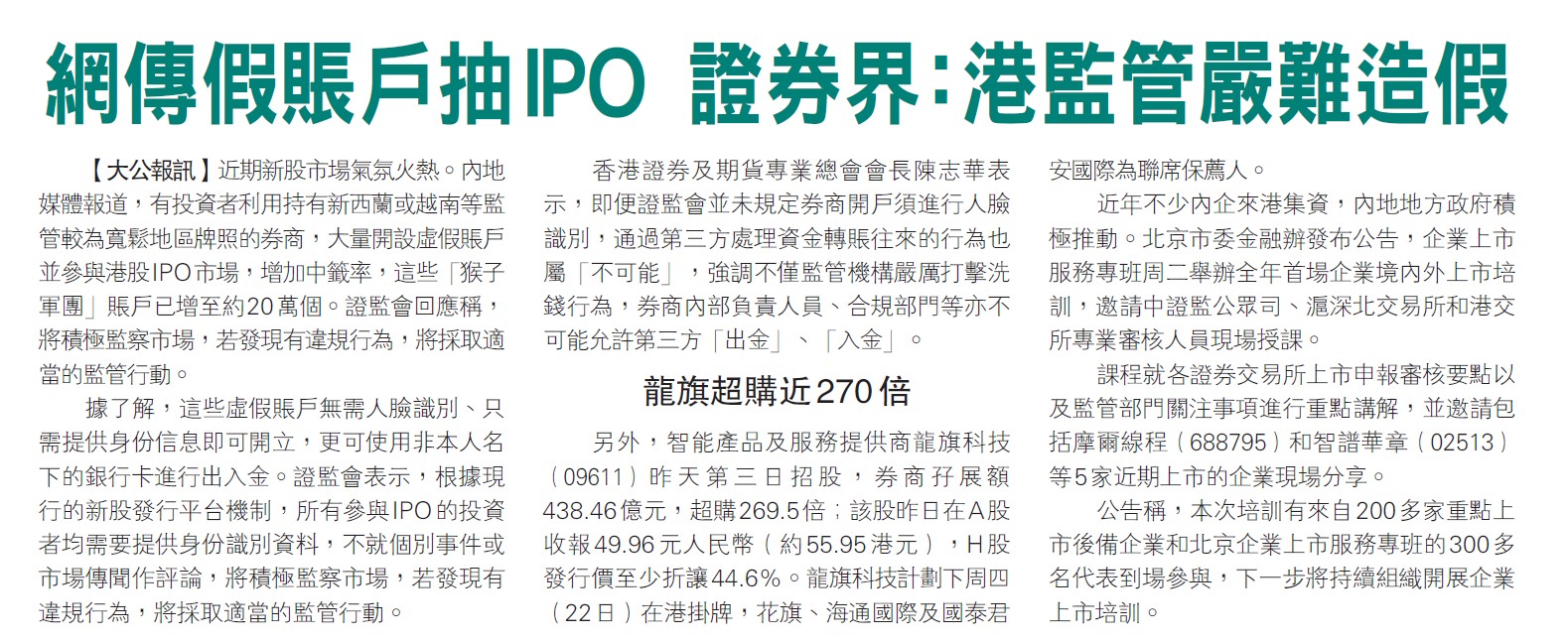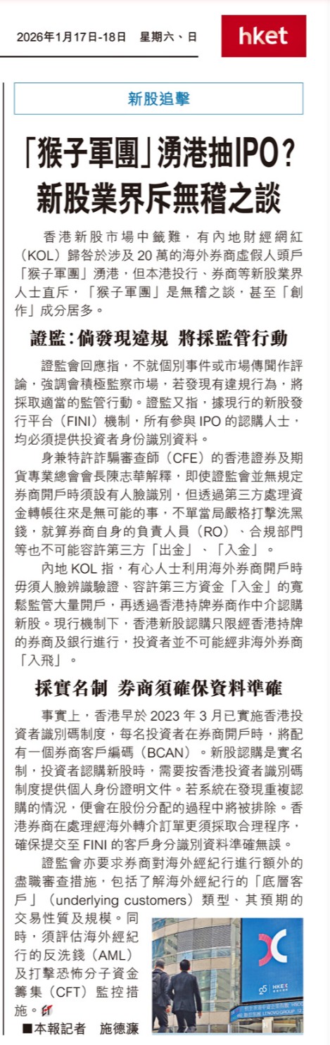 2026-01-17 大公報 網傳假賬戶抽IPO 證券界:港監管嚴難造假 (相片)