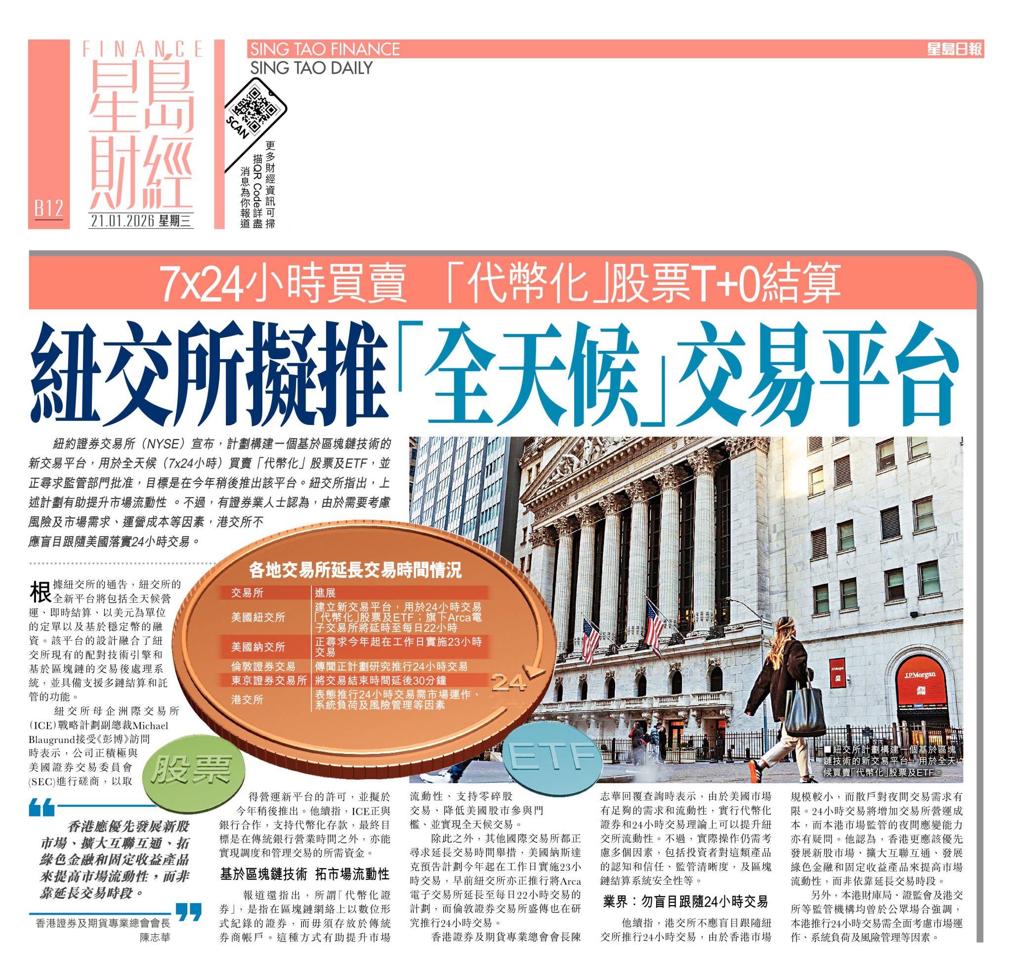 2026-01-21 星島日報 紐交所擬推「全天候」交易平台 (相片)