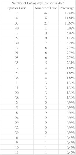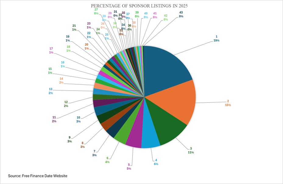 Chart 2: Number of Listings by Sponsor in 2025