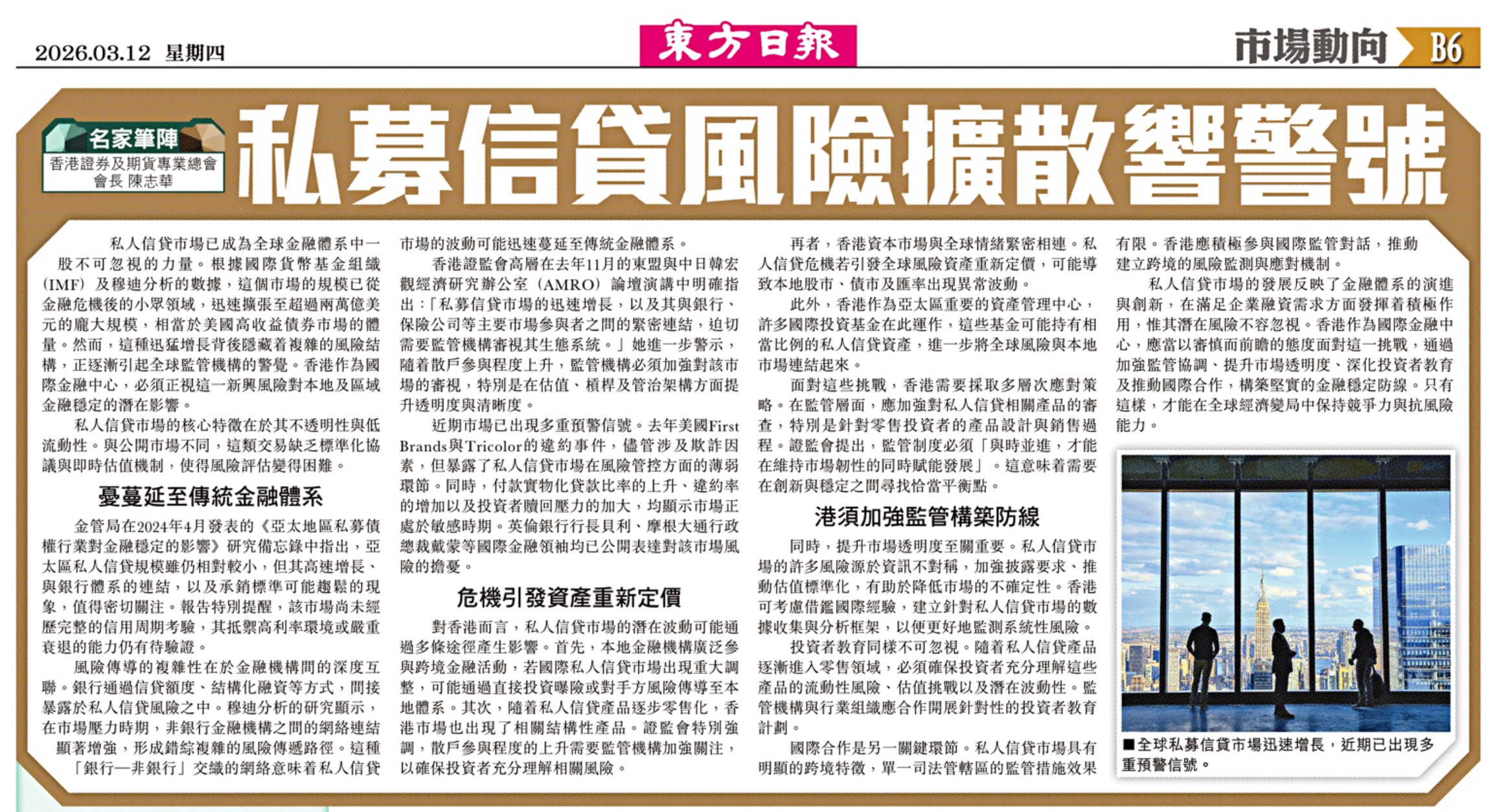 2026-03-12 東方日報 陳志華|私募信貸風險擴散響警號 (相片)