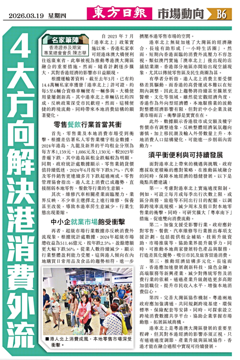 2026-03-19 東方日報 陳志華|四策扭轉港車北上影響 保本地經濟穩健… (相片)