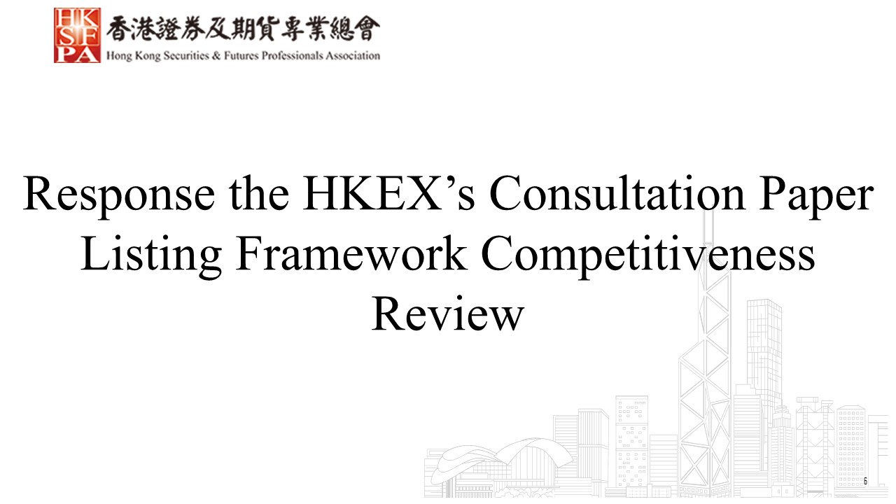 This document constitutes the formal response to the Consultation Paper on “Review of Listing Regime Competitiveness” issued by Hong Kong Exchanges and Clearing Limited. We sets out its positions and justifications on key proposals, including lowering the financial eligibility threshold for Weighted Voting Rights (WVR) structures, relaxing the WVR ratio cap, introducing dual pathways for identifying innovative industry companies, facilitating secondary listings of overseas issuers, expanding the permitted use of US GAAP, and implementing confidential filing for listing applications. The overarching goal is to enhance the competitiveness of Hong Kong’s listing regime and attract more new economy and innovative companies to list in Hong Kong.