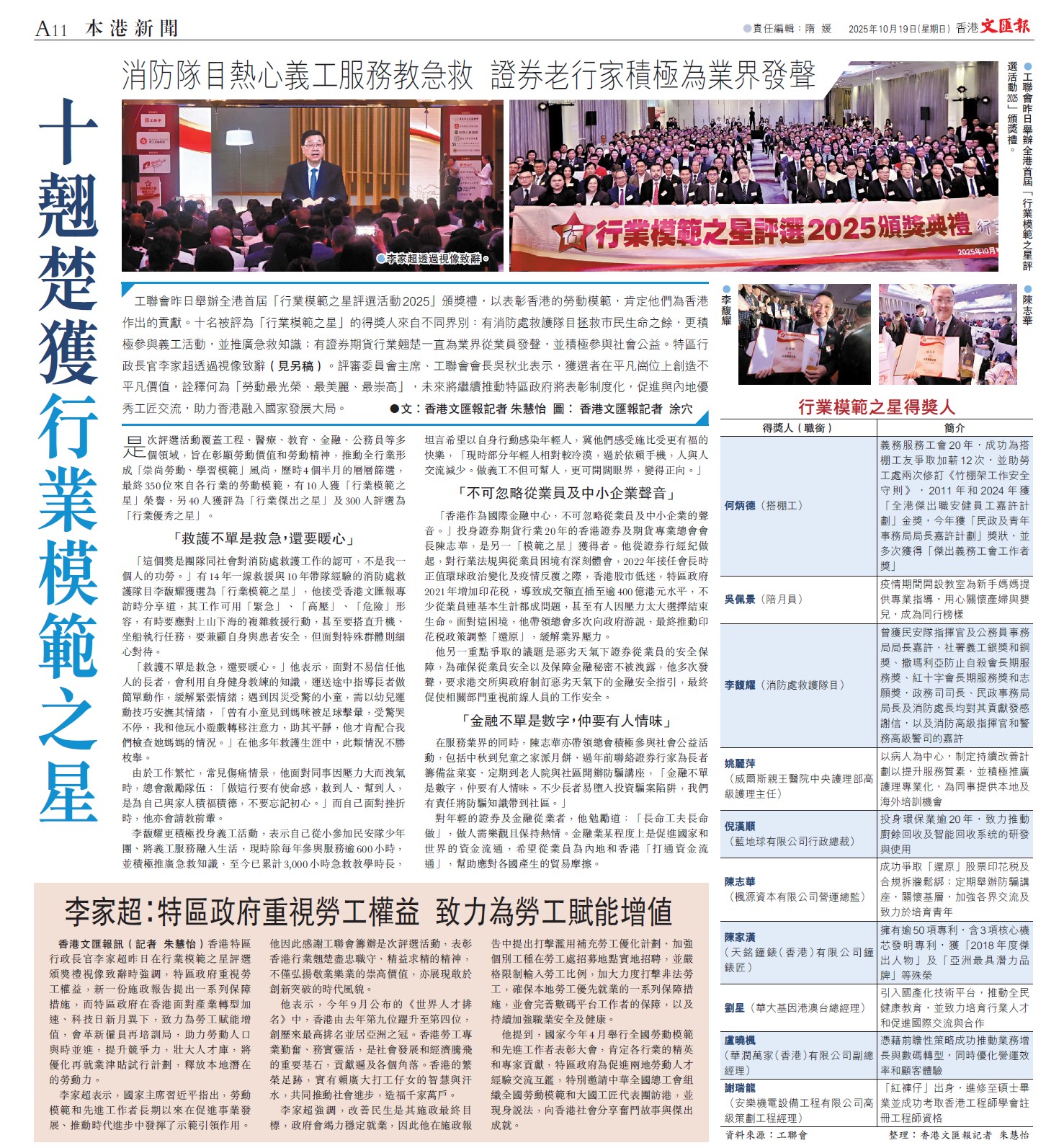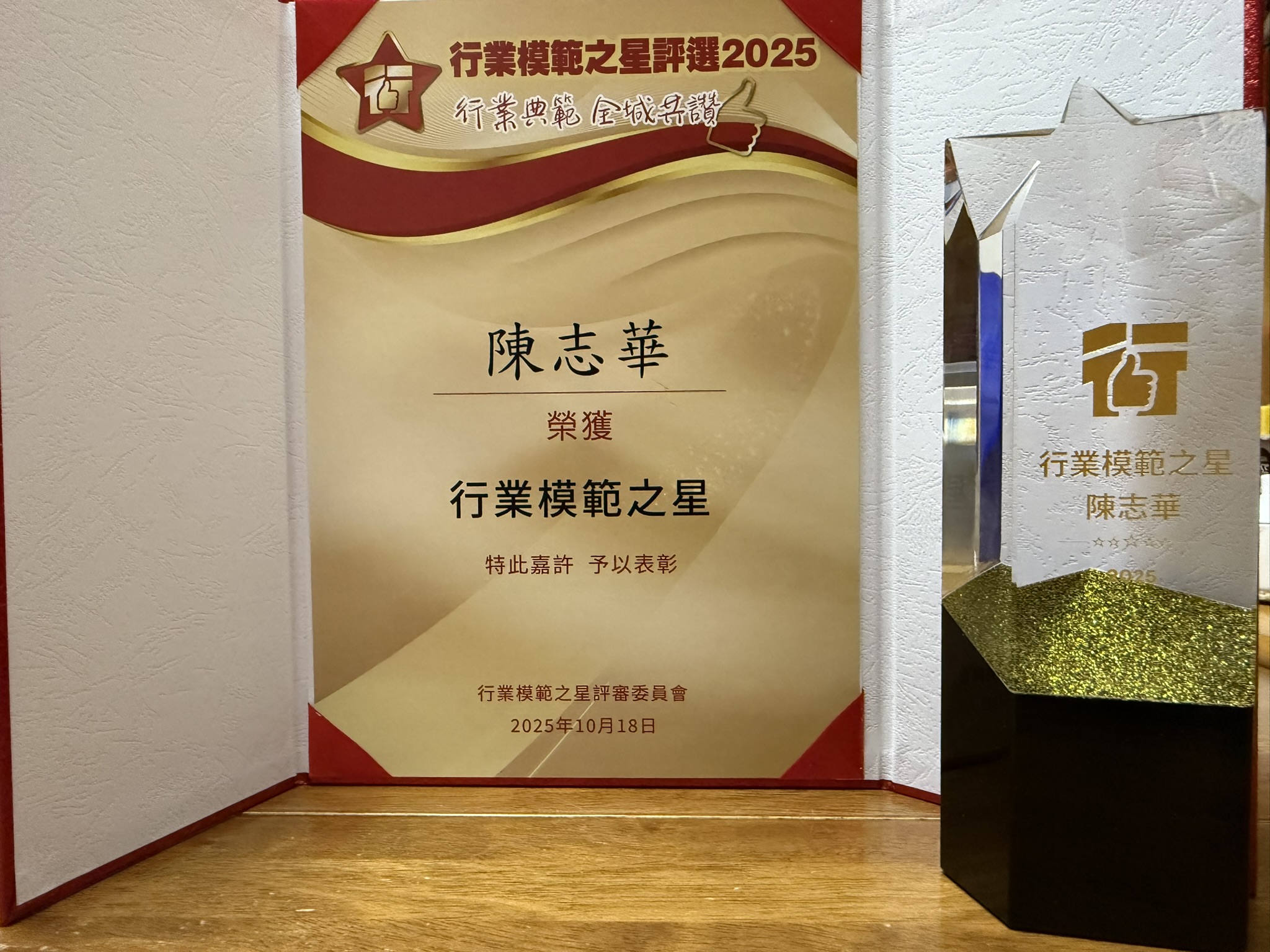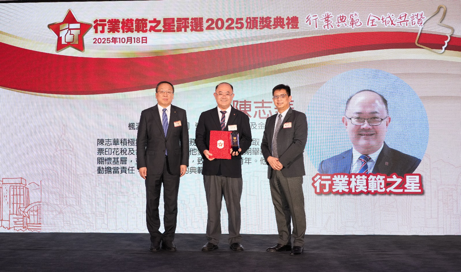 本会会长陈志华先生于2025年10月18日获得首届「行业模范之星」奖项。「行业模范之星」,即是内地的「劳动模范」。