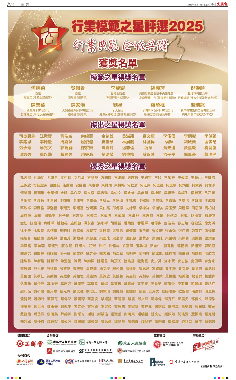 「行业模范之星」评选活动获得特区政府大力支持下,「行业模范之星」评选活动成功汇聚劳、资、政三方的核心力量,各大集团工会、各大商会积极合办「行业模范之星」评选。