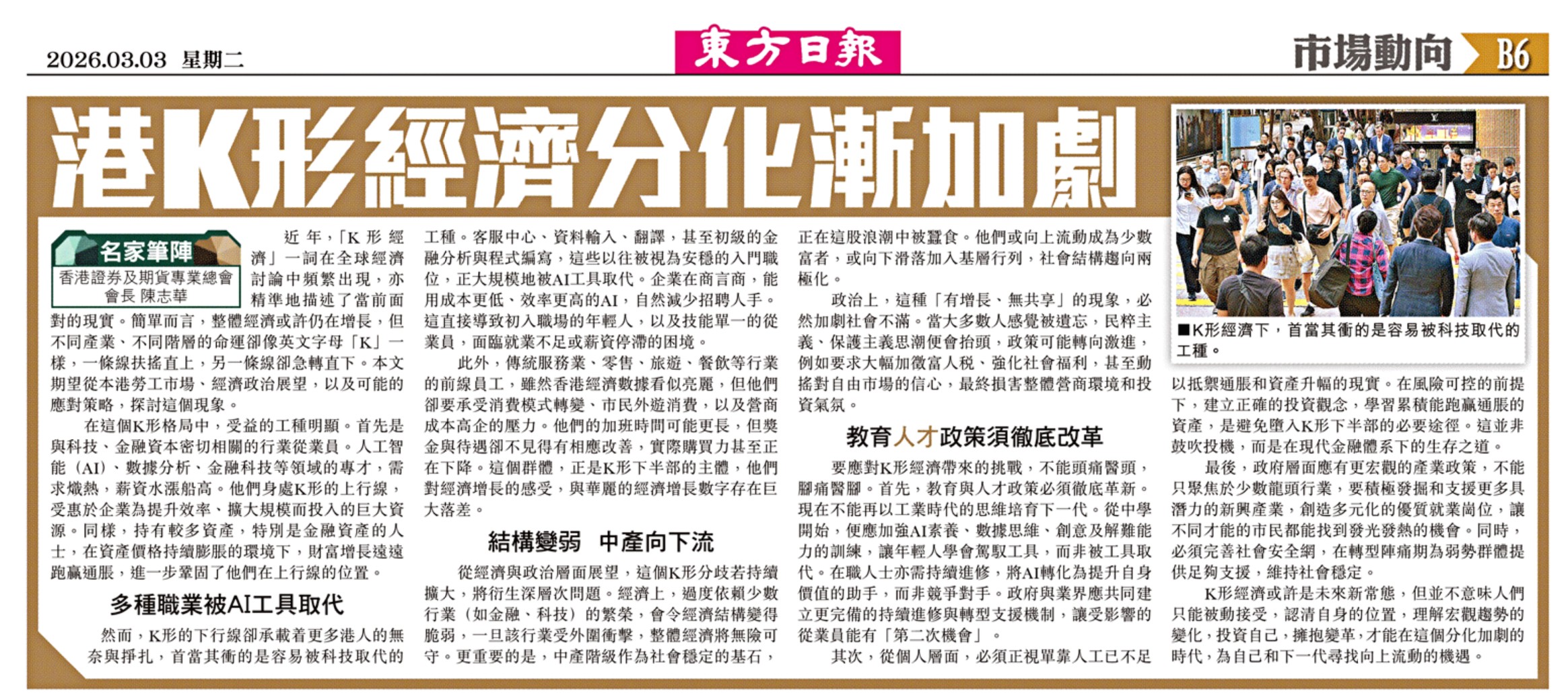 陈志华|港K形经济分化渐加剧