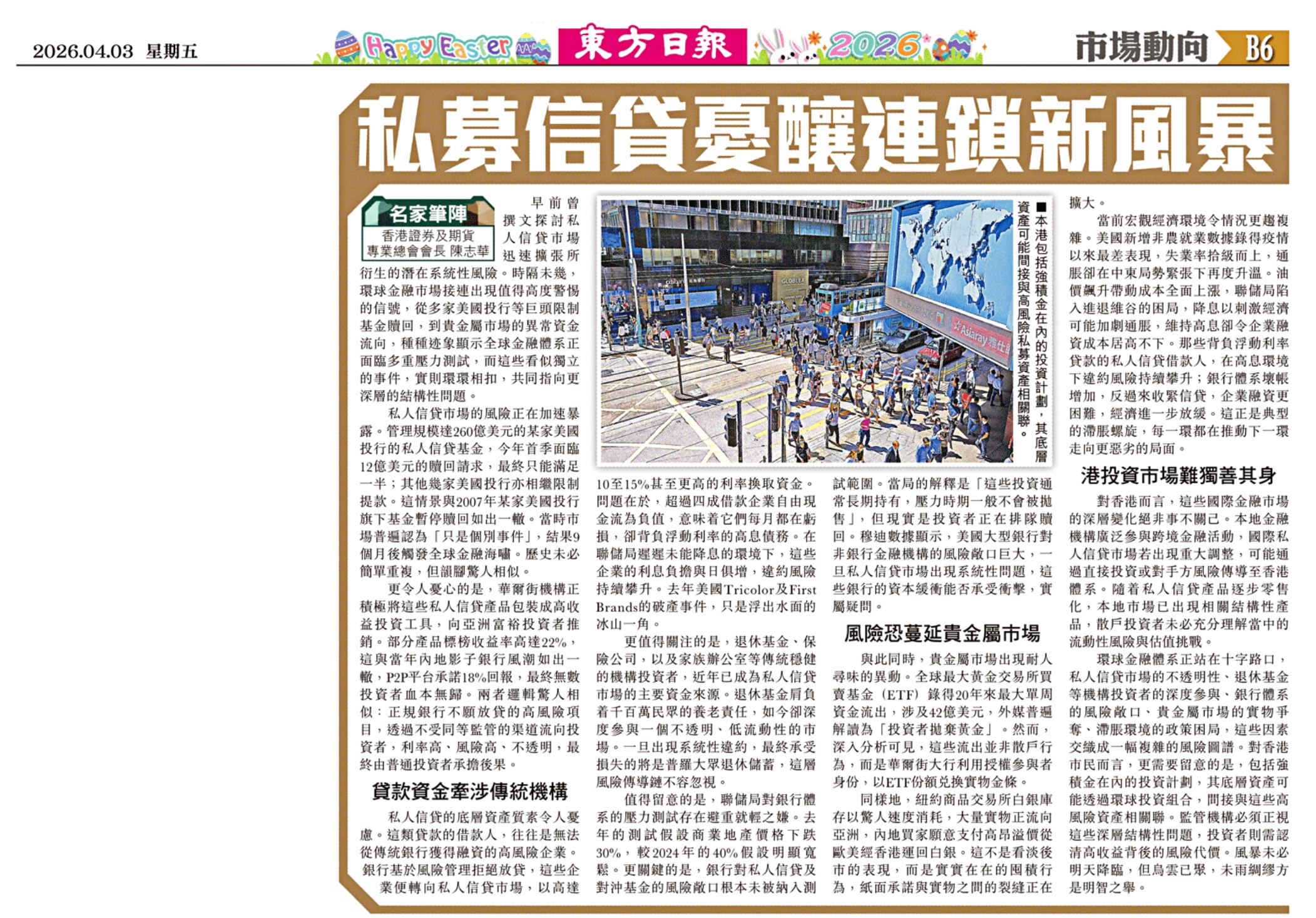 2026-04-03 东方日报 陈志华|私募信贷忧酿连锁新风暴 (相片)2026-04-02 无綫新闻 陈志华|利率不动、加息上桌:鲍威尔最后一次登台前的三大信号 (相片)