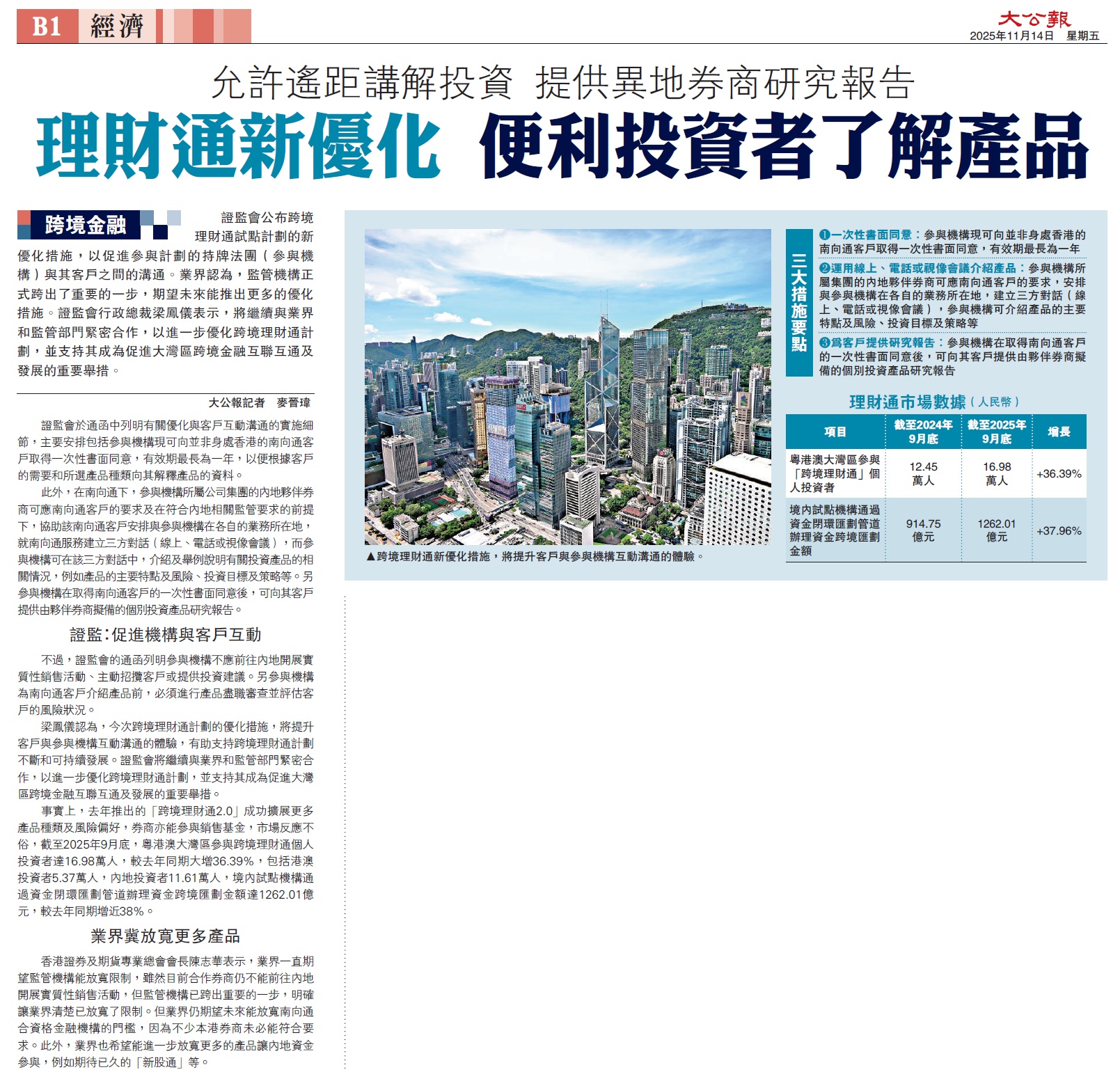 2025-11-14 大公報 跨境金融/理財通新優化 便利投資者了解產品 (相片)